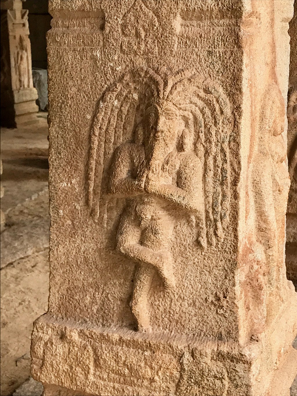 Achyutaraya temple at Hampi is dated to 1534 and depicts a number of non-seated poses such as tree, depicted here.